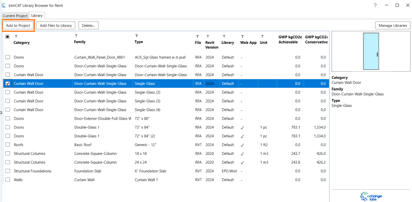 Allows to add the checked family types to the current Revit project. They will be added together with their corresponding bimCAT back annotations, that will be used to restore the bimCAT collections, builders and bimCAT-specific material layers during the next bimCAT export.