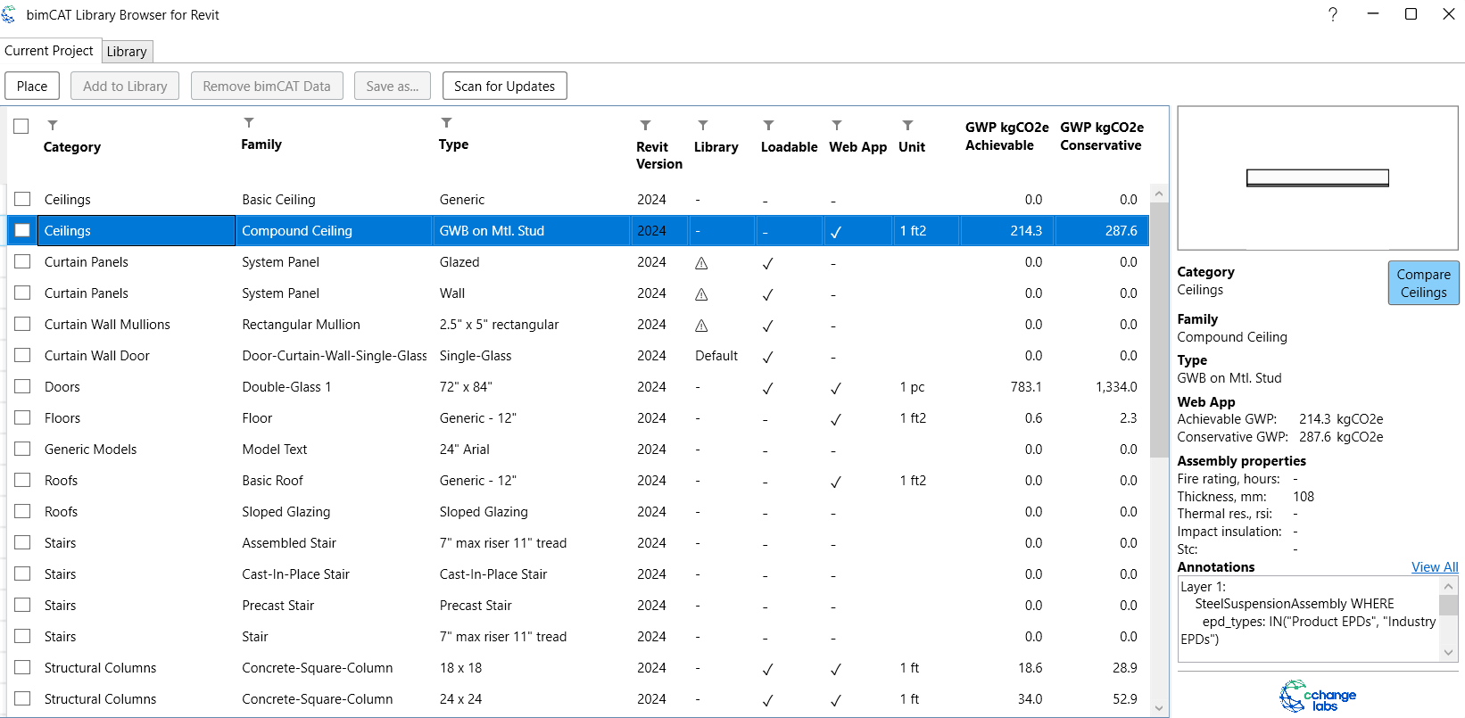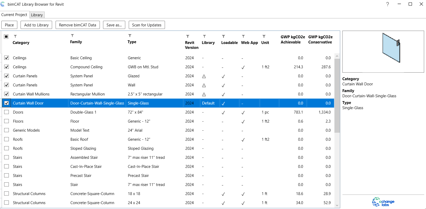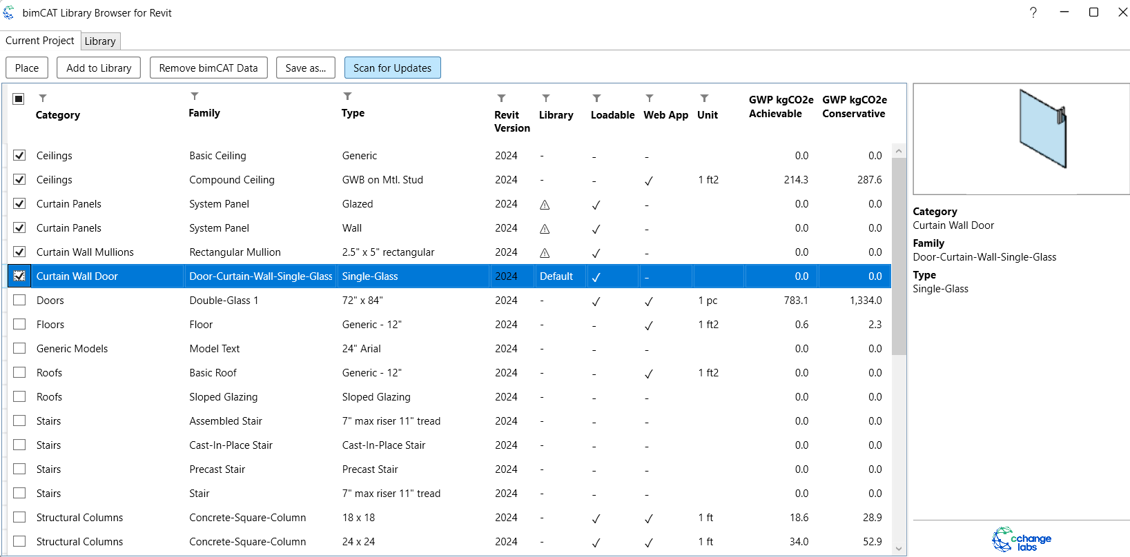 This time, click the 'Scan for Updates' button to check if there are any families in any of our bimCAT libraries that have a matching name with families in the opened model.