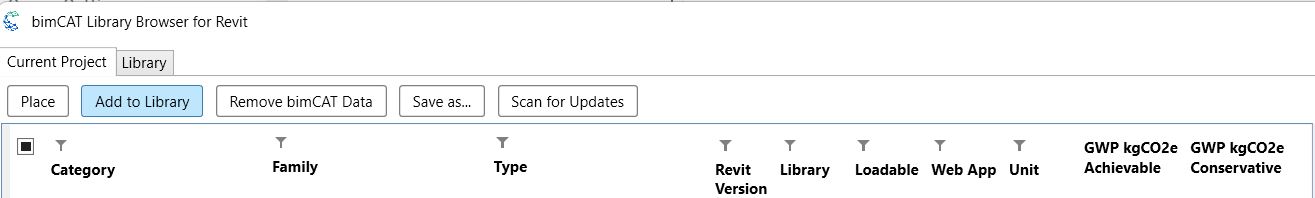 Open the source project with defined material assignments and then open the [bimCAT Library](https://docs.bimcat.org/user-manual/usage/library-browser).